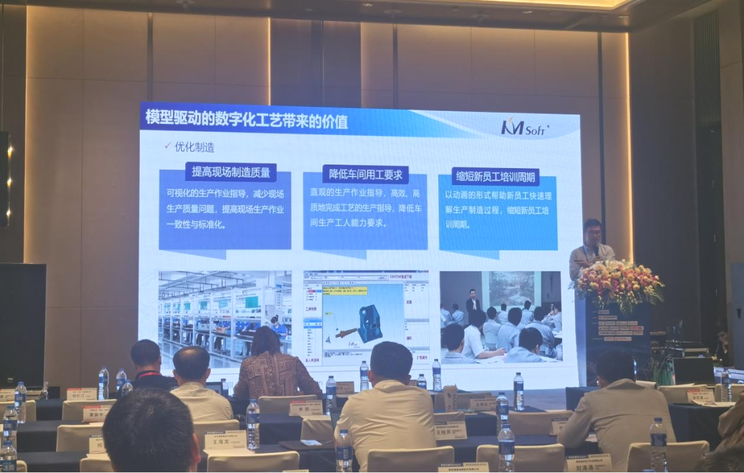 开目公司3D事业部总经理助理骆强应邀在大会发表《模型驱动的数字化制造赋能企业转型》主旨演讲,骆总从当前制造企业数字化转型普遍面临的问题为切入点,讲述了开目面向中国制造企业潜心研制的“面向模型驱动的数字化工艺制造解决方案”,在全三维模型的环境下,构建一体化的智能创新工艺管理平台,可帮助企业提升工艺设计能力,实现三维可视化工艺下车间,优化企业生产制造。