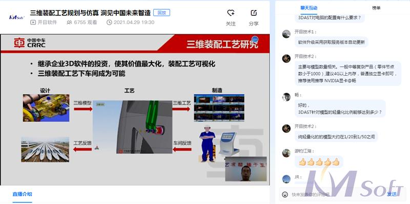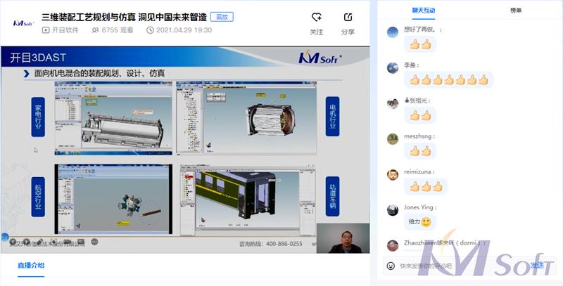 整场会议安排紧凑,互动频频,观点火花四射。3DAST进行三维装配工艺设计的流程是怎样的?3DAST针对模型的轻量化比例能够达到多少?工艺装备库是否可以自己扩展?针对观众的提问,开目公司技术大神全程在线答疑,专业、及时的答复获得一致好评。