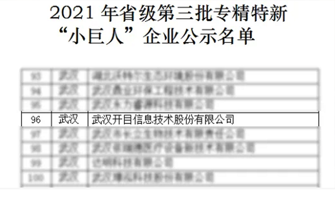 2021年,开目公司成功入选湖北省“专精特新”小巨人企业,成长为创新能力强、掌握关键核心技术的排头兵企业。