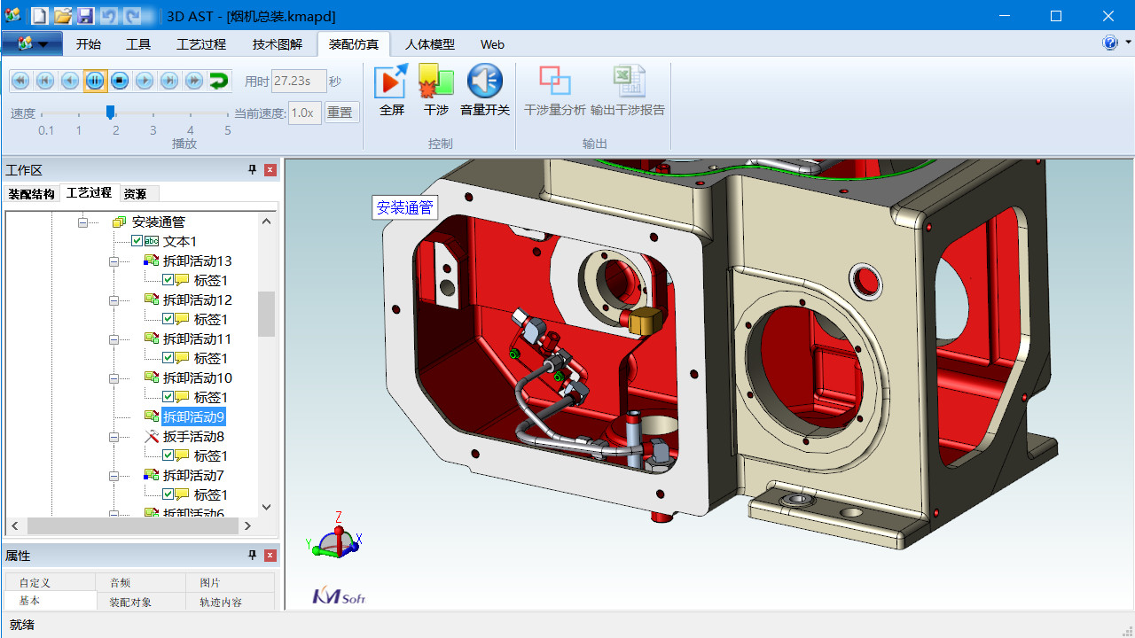 装配过程规划是三维工艺设计的重要内容,主要包括装配顺序、装配节拍、装配路径、制造资源规划、装配过程仿真验证等,通过合理的装配结构规划、方法规划、节拍规划、路径规划等,实现产品整个装配过程的最优工艺规划,其优劣直接影响到产品可装配性、装配质量、装配效率和装配成本。
