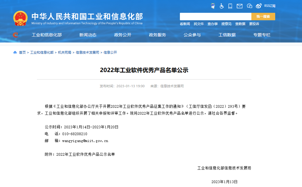工信部工业软件优秀产品是为贯彻落实《“十四五”软件和信息技术服务业发展规划》,推动工业软件产业高质量发展,重点征集的研发设计、生产制造、经营管理、运维服务等四类工业软件优秀产品,要求拥有自主知识产权、技术先进、实现产业化或已在行业中部署应用,在航空、航天、石化、钢铁、船舶、电力、交通、核工业、汽车、电子信息、移动终端、机械等重点领域有工业企业典型应用案例。