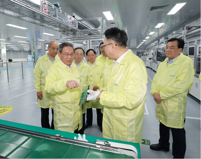 这是7月2日,李强在苏州汇川技术有限公司参观生产车间,了解企业研发生产等情况。新华社记者 王晔 摄