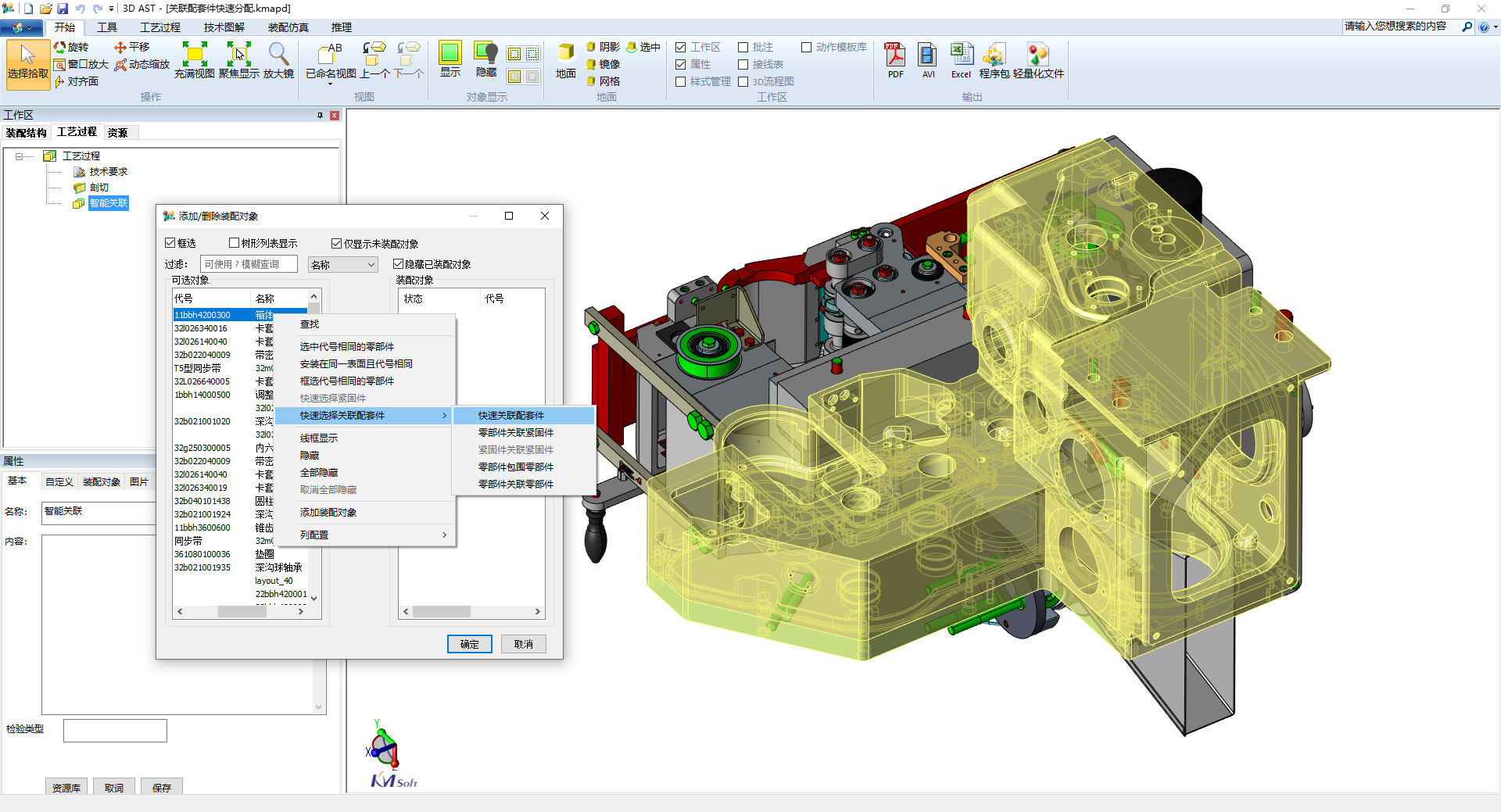 开目3DAST研发团队通过三维装配模型零部件特征之间的拓扑关系,基于国际、国家及行业标准和开目在工业软件多年的技术积累,自主研发了零部件智能关联算法,包括零部件关联紧固件、紧固件关联紧固件、零部件包围零部件等??梢栽谘≡衲沉悴考耐敝悄芡贫铣鲇肫溆泄亓叵档牧悴考幸淮涡蕴砑?,实现工序规划阶段零件的选取效率提升50%以上。